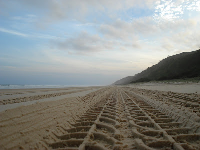 Nach der Ueberfahrt mit der Faehre ging es auch gleich richtig los: der Sand liess unseren Jeep alles andere als stabil fahren, und auch die vielen zum Teil recht hohen Unebenheiten machten die Fahrt zu einer sehr wackeligen Angelegenheit. Probleme bekommt man hier aber erst, wenn man im Sand stecken bleibt. Uns selbst blieb das zum Glueck dank umsichtiger Fahrweise erspart, aber an einigen Passagen war es schon recht heikel.