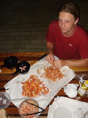 Bei 6 Euro 50 fuer ein Kilo Riesengarnelen nimmt man auch mal etwas Vorarbeit in Kauf